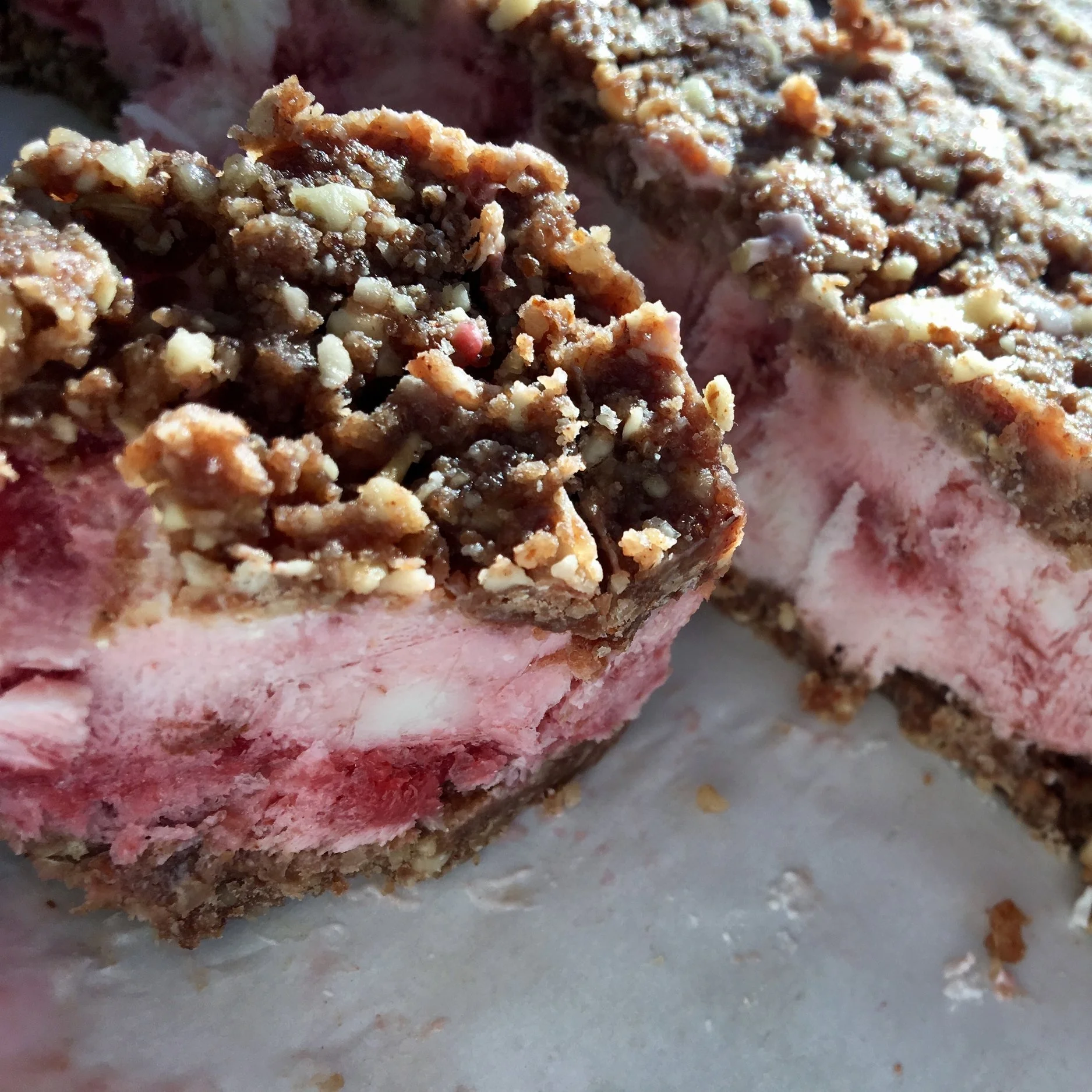Assemble: Pour the ‘ice cream’ over the frozen sandwich layer and put the pan back in the freezer to freeze until firm (about 2-3 hours).